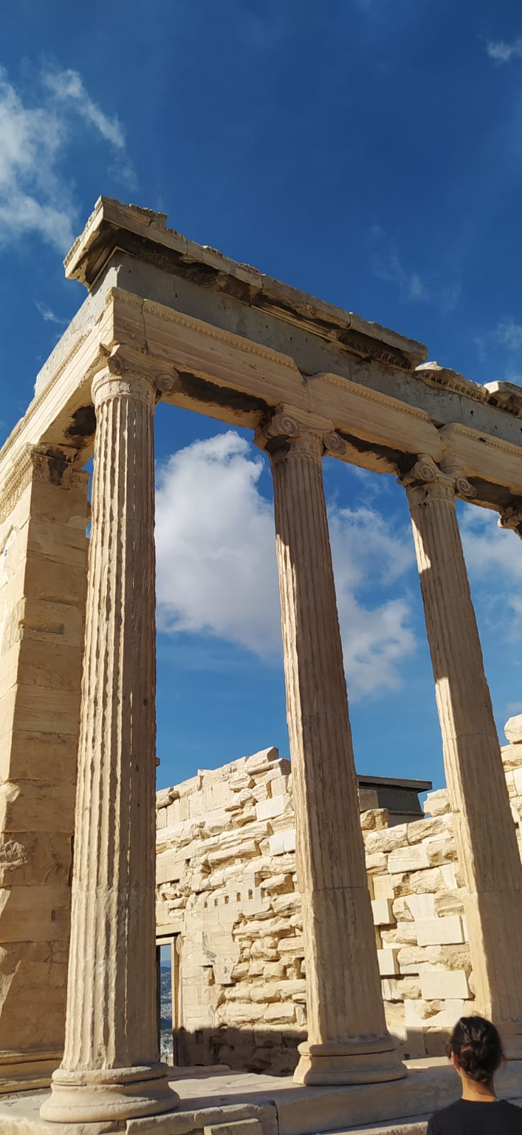 Porque Grecia tiene muchos terremotos, entonces se dieron cuenta que lo que construían en esa colina no se caía a pesar de que todo se movía. Aun asi sufrió terremotos donde parte del edificio cayó, razón por la cual están reconstruyéndolo hasta el día de hoy.