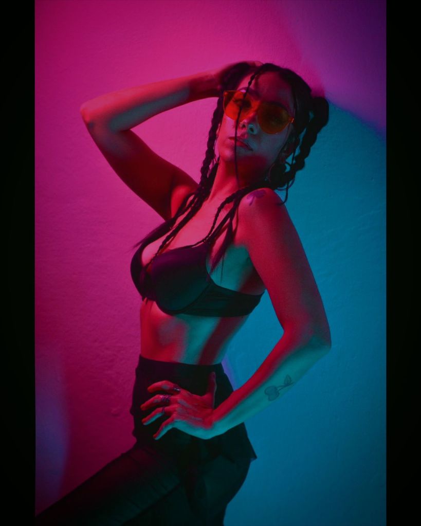 En realidad mis comienzos intentando crear música y escuchando, eran bastante pesados; sonidos sucios, distorsión y mucho espíritu adolescente que no sabe qué esta haciendo, pero hace, jajaja. Metal, punk y hardcore como influencias (que hasta el día de hoy igual sigo escuchando), entonces hacía ese tipo de bandas o a eso apuntaba. Voy a subir videos luego, aunque quizás me da cringe. Más adelante descubrí que todo lo que componía tenía mucho del pop y que me gustaba. Lo acepté. Dicen que una vez que aceptas quien eres, todo es más fácil jajaja. Ya más adelante tuve una banda donde podía hacer mi drama tranquila con las letras, mucha metáfora, ensayos una vez a la semana para ser feliz, organizar fechas, tocábamos en bares, venían nuestros amigos, hacíamos los flyers, etc. ese fue como que el paso “rock-pop”. Aunque oscurito, aunque alternativo, aunque un poco más pesado, aunque -lo que sea-, el pop estaba ahí. Recuerdo que un día me regalaron una computadora y traía descargado el disco “Playing The Angel”, de Depeche Mode, que recién había salido supongo por la época y creo que me cambió bastante la vida porque desde ahí descubrí muchas cosas. Muchos dirán que es el disco más “careta” de Depeche, pero a mí me flasheó a los 15 años. Sonidos electrónicos nuevos para mi, sonaba oscuro sin serlo, sonaba pesado sin serlo. Luego me empecé a fascinar con esto de descargar música, entonces descubrí grupos y artistas como The Chemical Brothers, Justice, Daft Punk, The Prodigy, Miss Kittin, LadyTron, And One, no sé, muchos, era una época en la que todos empezábamos a tener internet en casa y empezábamos a usar Youtube, a partir de ahí, yo fascinada. También siempre me llamó mucho la atención la música electrónica de los 80s, los sonidos de los sintetizadores, la música que cuando era chica las señoras usaban para hacer aeróbics jajaja, de hecho hoy en día tengo un set que canto en vivo exclusivamente puras de los 80s y 90s, de ese estilo, Eurodance, Technotronic, Culture Beat, etc. me parece bizarro y me divierte muchísimo. En fin, para no hacerte largo el cuento, me salteo años y paso al momento bisagra donde empecé a incorporar sonidos electrónicos para componer: En resumen, había llegado a Ciudad de México y tuve un proyecto hermoso con gente increíble donde experimentamos muchísimo, compartimos mucha música y creamos demasiado en muy poco tiempo. El proyecto era Synth pop, electro pop, igual tenía tintes alternativos. Pasábamos horas hablando de música, compartiendo experiencias e investigando con instrumentos tipo laboratorio, cosa que a mi me fascina hacer. Por cuestiones de la vida, cuando me mudé de CDMX a Playa, nos dejamos de ver seguido, y cada cual siguió su camino. Aunque seguimos en contacto y trabajamos de manera remota a veces, algunas canciones sigo cantando en vivo pese a que ni están en las redes, pero decidí enfocarme más en un proyecto unipersonal, justamente por esto; uno no puede dejar de hacer música porque los demás estén lejos u ocupados, o porque te desvinculaste de un proyecto. La música es uno mismo. Podes compartir, colaborar, tener proyectos en equipo, subir o no subir el material, pero tu arte sos vos, va donde vos vayas.