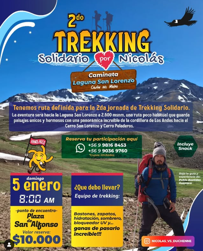 Nicolás es un niño de 7 años, oriundo de Santiago, en Chile, quien también tiene la enfermedad de distrofia muscular de Duchenne. Para detenerla debe comprar el medicamento llamado Elevidys y realizar un tratamiento. Para eso necesita juntar $3.500 millones. Te dejamos uno de sus afiches con una actividad que realizarán para recaudar fondos.