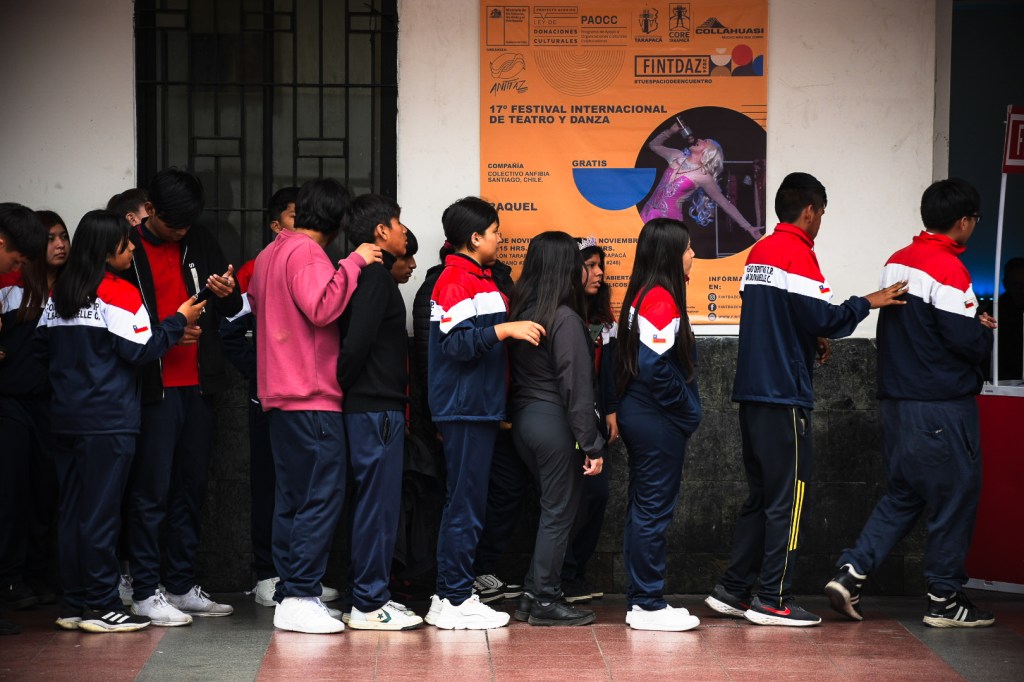 Finalmente, otra de las misiones que tiene el festival es acercarse a niños, niñas y adolescentes, para la generación de nuevas audiencias y por ello, produjo funciones en las que los y las estudiantes de 28 establecimientos educacionales de Iquique, Alto Hospicio, Chanavayita, Pozo Almonte, Pica, Huara, La Huayca y La Tirana, tuvieron la oportunidad de ver una obra de artes escénicas, ya sea dentro del mismo recinto educativo o asistiendo a las funciones en salas.