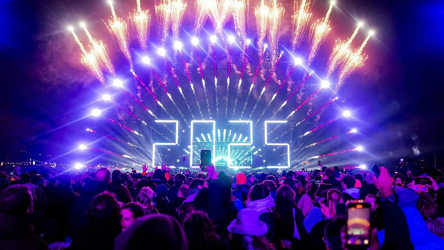 Fuegos artificiales en la bahía de Viña del Mar y ValparaísoAño nuevo en la torre Big Ben en Londres, Reino UnidoTeatro de la Opera, Sidney, AustraliaArco del Triunfo, París, FranciaLas celebraciones de Año nuevo, en Berlín, AlemaniaEl Atomium en Bruselas, Bélgica, durante la NocheviejaEspectáculo de luces en la Plaza de la Catedral de Vilna, LituaniaDos personas se besan durante la Nochevieja en Vilna, LituaniaVarias personas celebran el Año Nuevo en Atenas, GreciaCientos de personas celebran el Año Nuevo en la Plaza del Castillo de Varsovia, PoloniaImagen del escenario montado en la Plaza de los Ciudadanos en Helsinki, Finlandia, para celebrar año nuevo.Varias personas contemplan los fuegos artificiales en Roma, ItaliaCientos de personas celebran el Año Nuevo en la Plaza de los Museos de Ámsterdam, Países BajosLos participantes de un evento organizado en el Parque Shougang, en Pekín, hicieron la cuenta regresiva para el Año Nuevo.Los fuegos artificiales destellaron en el cielo desde el Burj Khalifa, el edificio más alto del mundo, durante las celebraciones de Nochevieja en Dubái, Emiratos Árabes Unidos.Ante el emblemático Cristo Redentor, la playa de Copacabana, en Río de Janeiro, celebró el inicio del nuevo año con un espectáculo de fuegos artificiales.Un tablero electrónico muestra «Feliz Año Nuevo» mientras se encienden los fuegos artificiales después de la tradicional caída de la bola en Times Square, Nueva York.Lanzan globos en Wuhan, China, para celebrar el Año Nuevo.Varias personas graban en video los fuegos artificiales desde el edificio Taipei 101 en Taiwán.La gente celebra el Año Nuevo en Taipei, Taiwán.Un mensaje de Año Nuevo se proyecta sobre la superficie del edificio del Gobierno Metropolitano de Tokio. Unos niños encienden petardos en una calle de Mandaluyong, Filipinas.Una persona posa frente a una decoración en El Cairo.Bailarines tradicionales actúan en Denpasar, en la isla indonesia de Bali.Las mujeres usan cintas para la cabeza del año 2025 mientras asisten a las celebraciones en Yakarta, Indonesia.En Seúl, Corea del Sur, la gente toma fotografías mientras contempla el último atardecer del año.Bailarinas tradicionales de Bali realizan durante la danza de liberar el sol.En Tailandia, los fuegos artificiales han brillado sobre el río Chao Phraya en Bangkok, donde cientos de barcos iluminados con luces de colores han esperado el momento.Seúl, Corea del Sur, da la bienvenida al 2025 golpeando una gran campana.